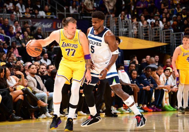 北京时间10月25日,NBA常规赛湖人主场对阵森林狼,詹姆斯继续因伤缺席。湖人在一度落后11分情况下,东契奇攻传结合激活湖人团队攻势,率队反扑在末节扩大25分优势奠定胜局,最终湖人128-110逆转战胜森林狼收获新赛季首胜,森林狼遭遇新赛季首败。东契奇狂轰49+11+8创造多项纪录,无詹湖人终于收获新赛季首胜。