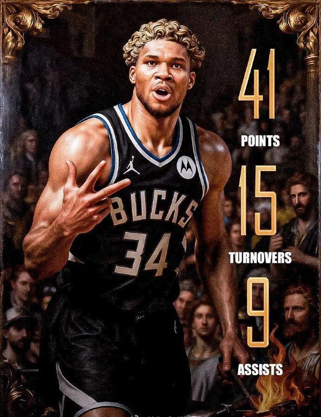 今天 希腊怪兽觉醒。化身人形高达,32次出手砸穿公牛禁区,狂砍 41+15+9+2+2的六边形数据!