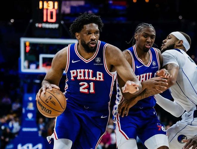 此外,本赛季三分球命中数,马克西61记联盟第一;本赛季马克西场均出战40.6分钟,联盟断档式第一;场均33.4分4.7篮板7.9助攻1.6抢断,场均得分仅次于东契奇,联盟第二;马克西只用15场比赛,就达成赛季500分100助攻,历史上最快控卫!而过去三个赛季,马克西已经4次单场砍下至少50+,全联盟仅次于亚历山大的5次。本赛季全联盟只有两人得分突破500,亚历山大和马克西!很强,关键马克西还耐造。首先,去年夏天,76人干了两件傻事:给了恩比德3年1.93亿提前续约合同;4年2.12亿超级顶薪签下保罗乔治。